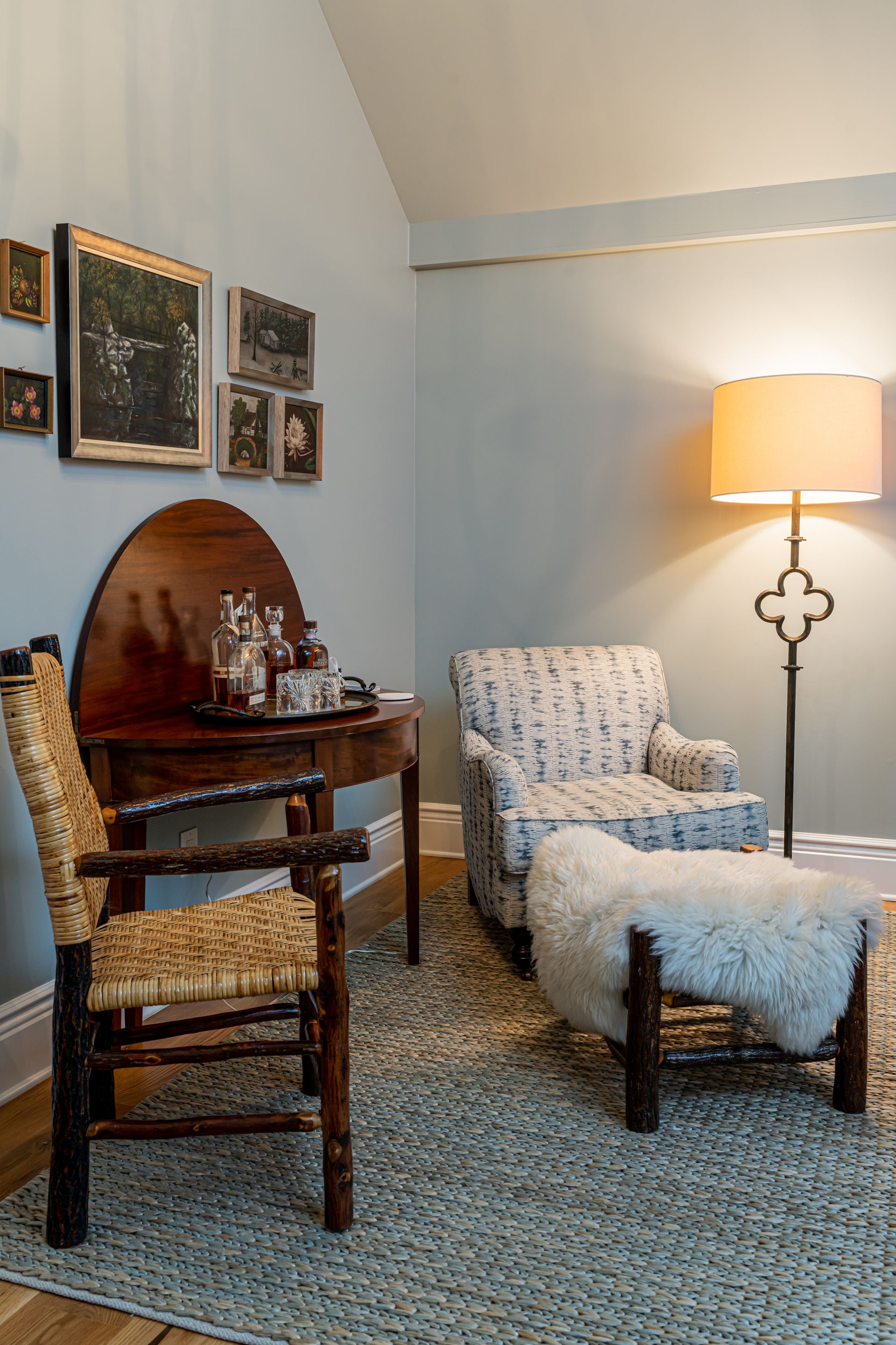 Through a blend of vintage pieces, vibrant textiles, and natural accents, this space embodies a sense of adventure and discovery, inviting exploration and storytelling amidst the rugged mountain setting.